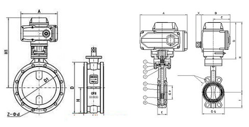 電動法蘭軟密封蝶閥結構          電動對夾式軟密封蝶閥結構
