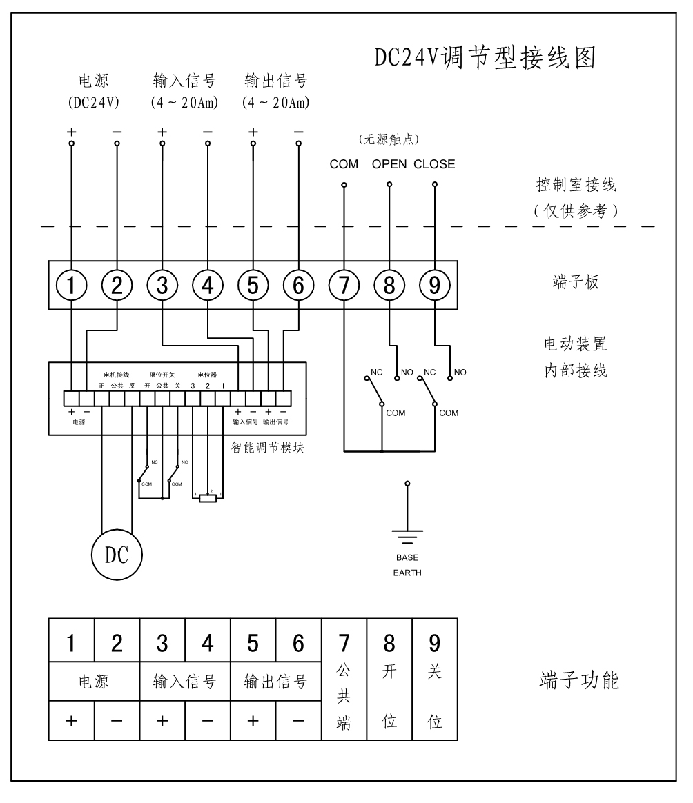 DC24V調節型電動球閥接線圖(4-20mA)